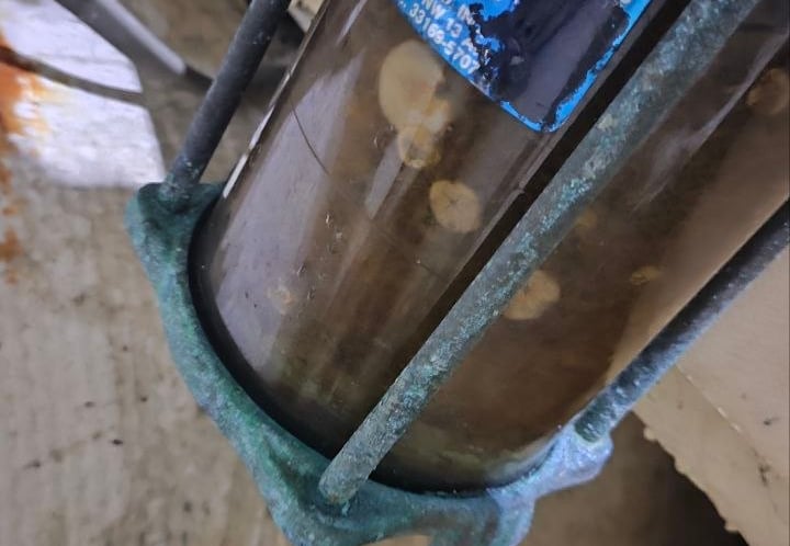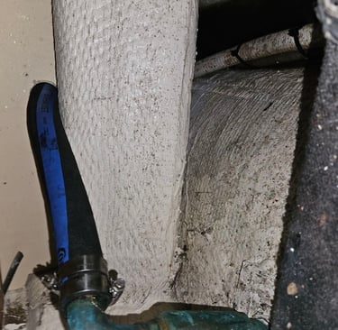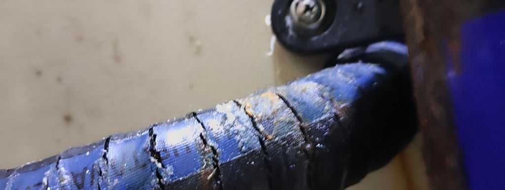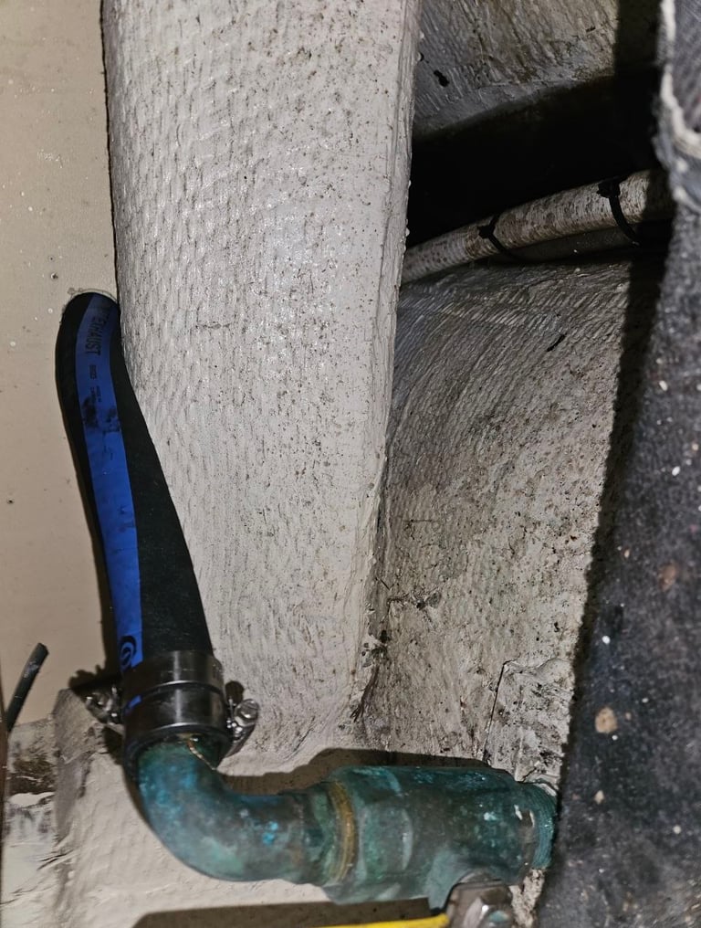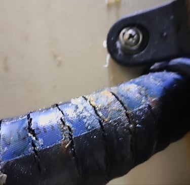 During inspection, we found that the raw water intake hose had developed a small crack near the connection point.